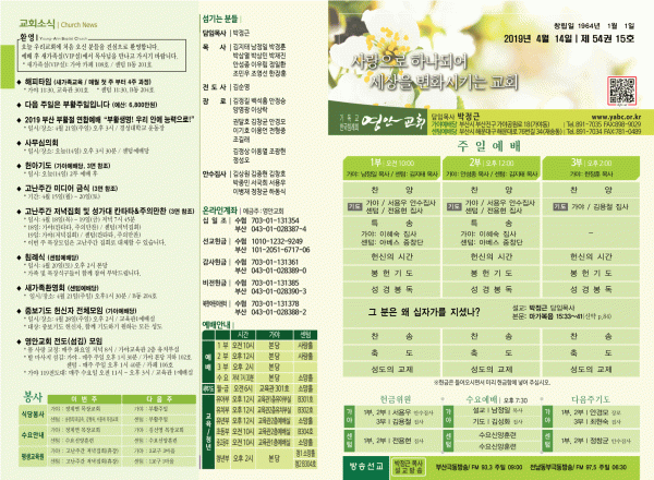 2019년 4월 14일 주보 페이지 정보 작성자 관리지기 작성일19-04-13 11:54 조회9,772회 댓글0건 관련링크 목록 본문 [2019년 4월 14일 주보] 댓글목록 등록된 댓글이 없습니다. 목록
