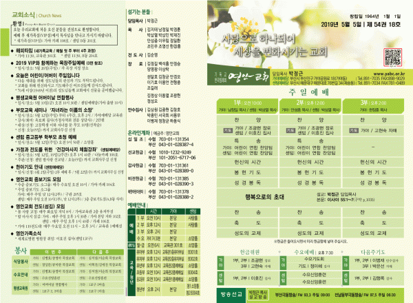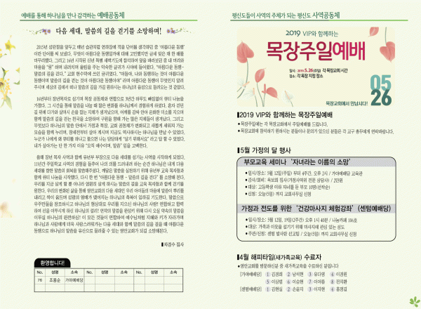 2019년 5월 5일 주보 페이지 정보 작성자 관리지기 작성일19-05-04 12:30 조회9,277회 댓글0건 관련링크 목록 본문 [2019년 5월 5일 주보] 댓글목록 등록된 댓글이 없습니다. 목록