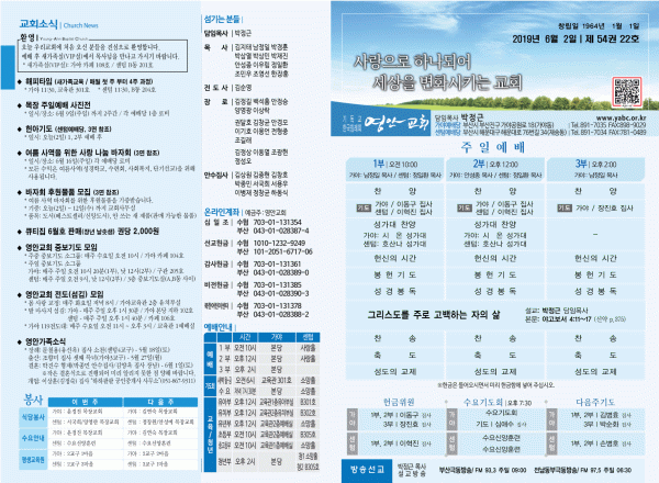 2019년 6월 2일 주보 페이지 정보 작성자 관리지기 작성일19-06-01 12:03 조회9,148회 댓글0건 관련링크 목록 본문 [2019년 6월 2일 주보] 댓글목록 등록된 댓글이 없습니다. 목록