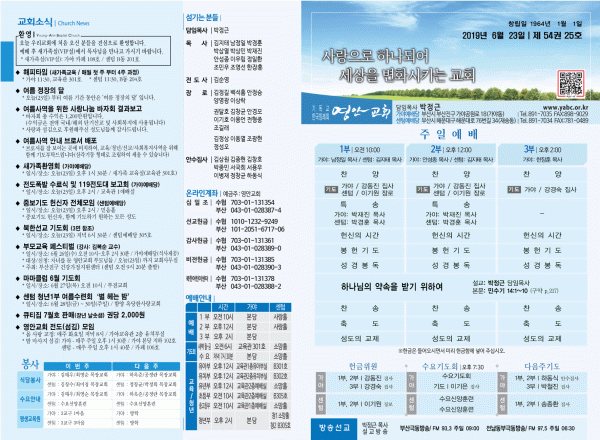 2019년 6월 23일 주보 페이지 정보 작성자 관리지기 작성일19-06-22 11:33 조회9,229회 댓글0건 관련링크 목록 본문 [2019년 6월 23일 주보] 댓글목록 등록된 댓글이 없습니다. 목록