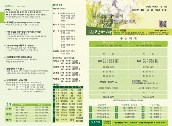 2018년 4월 1일 주보 페이지 정보 작성자 관리지기 작성일18-03-31 12:16 조회11,235회 댓글0건 관련링크 목록 본문 [2018년 4월 1일 주보] 댓글목록 등록된 댓글이 없습니다. 목록