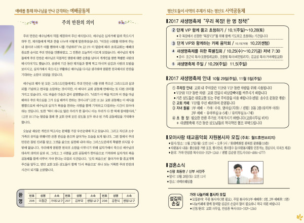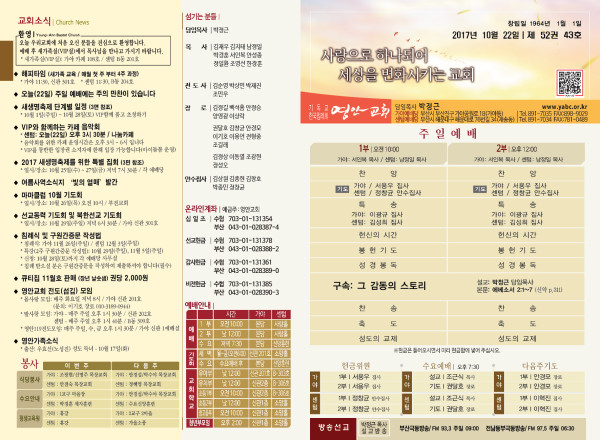 2017년 10월 22일 주보 페이지 정보 작성자 관리지기 작성일17-10-21 11:42 조회14,507회 댓글0건 관련링크 목록 본문 2017년 10월 22일 주보 댓글목록 등록된 댓글이 없습니다. 목록
