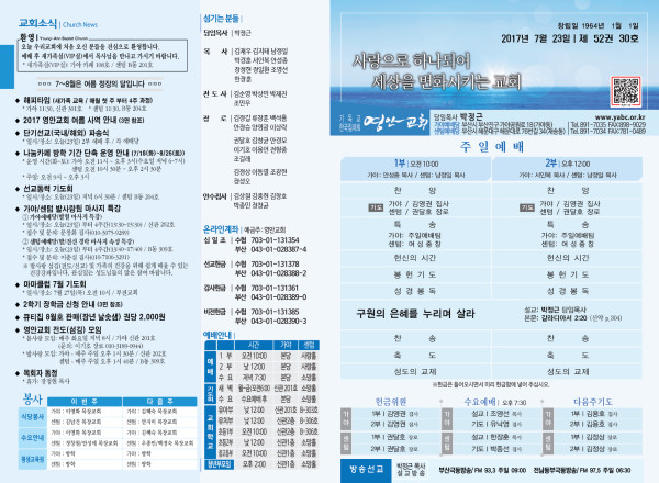 2017년 7월 23일 주보 페이지 정보 작성자 관리지기 작성일17-07-22 11:27 조회12,425회 댓글0건 관련링크 목록 본문 2017년 7월 23일 주보 댓글목록 등록된 댓글이 없습니다. 목록