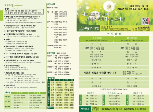 2017년 4월 9일 주보 페이지 정보 작성자 관리지기 작성일17-04-08 11:34 조회14,191회 댓글0건 관련링크 목록 본문 2017년 4월 9일 주보 댓글목록 등록된 댓글이 없습니다. 목록