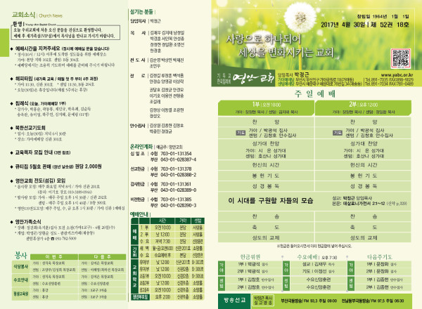 2017년 4월 30일 주보 페이지 정보 작성자 관리지기 작성일17-04-29 12:28 조회14,231회 댓글0건 관련링크 목록 본문 2017년 4월 30일 주보 댓글목록 등록된 댓글이 없습니다. 목록