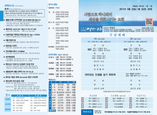 2017년 6월 25일 주보 페이지 정보 작성자 관리지기 작성일17-06-24 11:36 조회14,081회 댓글0건 관련링크 목록 본문 2017년 6월 25일 주보 댓글목록 등록된 댓글이 없습니다. 목록