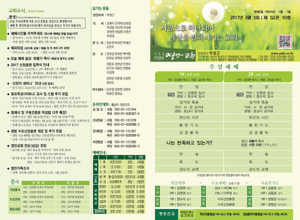 2017년 3월 5일 주보 페이지 정보 작성자 관리지기 작성일17-03-04 13:00 조회14,116회 댓글0건 관련링크 목록 본문 2017년 3월 5일 주보 댓글목록 등록된 댓글이 없습니다. 목록