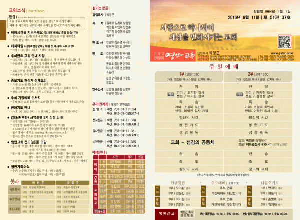 2016년 9월 11일 주보 페이지 정보 작성자 관리지기 작성일16-09-10 12:21 조회13,664회 댓글0건 관련링크 목록 본문 [2016년 9월 11일 주보] 댓글목록 등록된 댓글이 없습니다. 목록