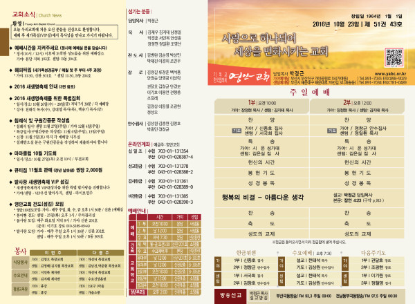 2016년 10월 23일 주보 페이지 정보 작성자 관리지기 작성일16-10-22 11:58 조회13,174회 댓글0건 관련링크 목록 본문 2016년 10월 23일 주보 댓글목록 등록된 댓글이 없습니다. 목록