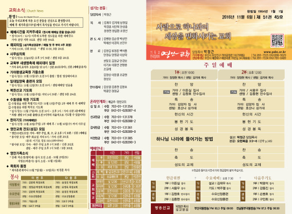 2016년 11월 6일 주보 페이지 정보 작성자 관리지기 작성일16-11-05 11:49 조회13,991회 댓글0건 관련링크 목록 본문 2016년 11월 6일 주보 댓글목록 등록된 댓글이 없습니다. 목록