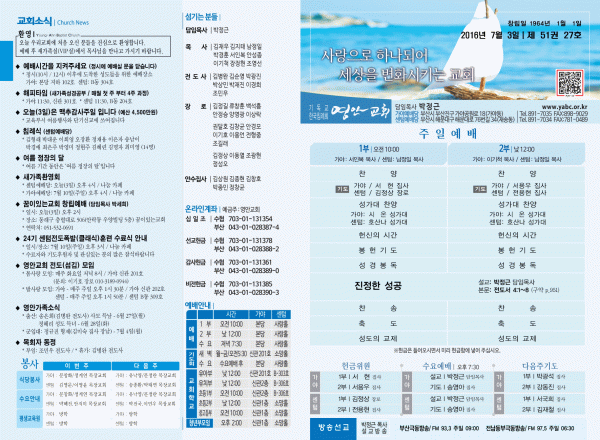 2016년 7월 3일 주보 페이지 정보 작성자 관리지기 작성일16-07-02 15:36 조회13,155회 댓글0건 관련링크 목록 본문 [2016년 7월 3일 주보] 댓글목록 등록된 댓글이 없습니다. 목록