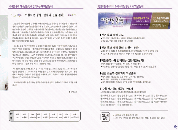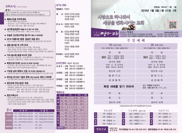 2016년 1월 3일 주보 페이지 정보 작성자 영안교회 작성일16-01-02 14:10 조회11,024회 댓글0건 관련링크 목록 본문 2016년 1월 3일 주보 댓글목록 등록된 댓글이 없습니다. 목록
