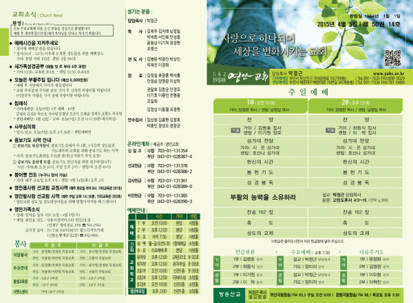 2015년 4월 5일 주보 페이지 정보 작성자 yabc 작성일15-04-04 00:00 조회10,034회 댓글0건 관련링크 목록 본문 2015년 4월 5일 주보 댓글목록 등록된 댓글이 없습니다. 목록