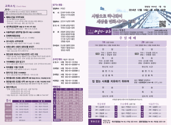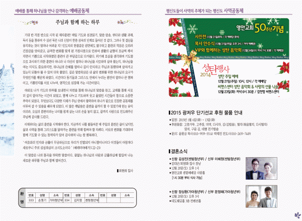 2014년 12월 14일 주보 페이지 정보 작성자 yabc 작성일14-12-13 00:00 조회9,791회 댓글0건 관련링크 목록 본문 2014년 12월 14일 주보 댓글목록 등록된 댓글이 없습니다. 목록