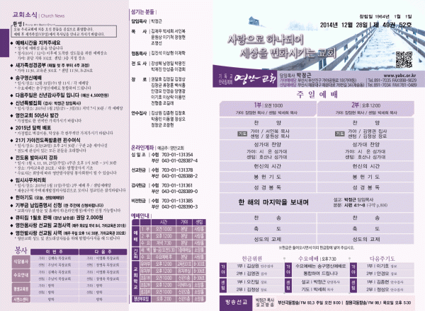 2014년 12월 28일 주보 페이지 정보 작성자 yabc 작성일14-12-27 00:00 조회10,874회 댓글0건 관련링크 목록 본문 2014년 12월 28일 주보 댓글목록 등록된 댓글이 없습니다. 목록