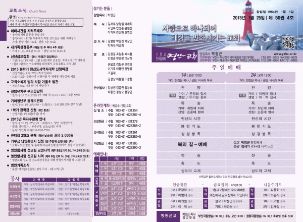 2015년 1월 25일 주보 페이지 정보 작성자 yabc 작성일15-01-24 00:00 조회10,459회 댓글0건 관련링크 목록 본문 2015년 1월 25일 주보 댓글목록 등록된 댓글이 없습니다. 목록