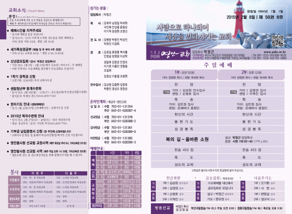 2015년 2월 8일 주보 페이지 정보 작성자 yabc 작성일15-02-07 00:00 조회10,100회 댓글0건 관련링크 목록 본문 2015년 2월 8일 주보 댓글목록 등록된 댓글이 없습니다. 목록
