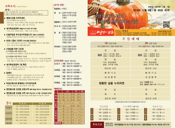 2014년 11월 9일 주보 페이지 정보 작성자 yabc 작성일14-11-08 00:00 조회10,308회 댓글0건 관련링크 목록 본문 2014년 11월 9일 주보 댓글목록 등록된 댓글이 없습니다. 목록