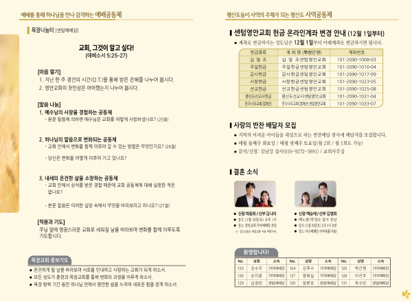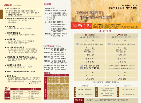 2024년 11월 24일 주보 (센텀예배당) 페이지 정보 작성자 관리지기 작성일24-11-23 10:35 조회2,078회 댓글0건 관련링크 목록 본문 2024년 11월 24일 주보 (센텀예배당) 댓글목록 등록된 댓글이 없습니다. 목록