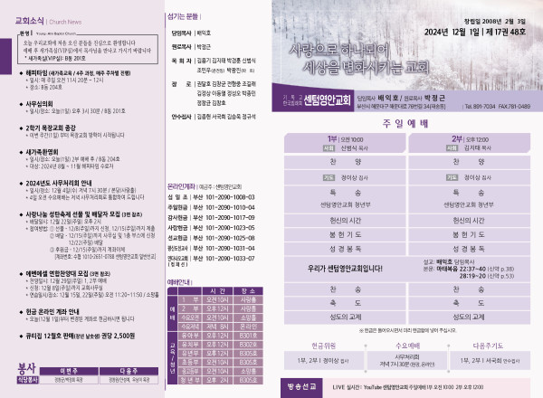 2024년 12월 1일 주보 (센텀예배당) 페이지 정보 작성자 관리지기 작성일24-11-30 09:39 조회2,158회 댓글0건 관련링크 목록 본문 2024년 12월 1일 주보 (센텀예배당) 댓글목록 등록된 댓글이 없습니다. 목록