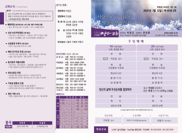 2025년 1월 12일 주보 페이지 정보 작성자 관리지기 작성일25-01-11 10:40 조회2,403회 댓글0건 관련링크 목록 본문 2025년 1월 12일 주보 댓글목록 등록된 댓글이 없습니다. 목록