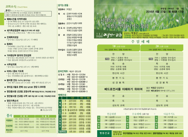2014년 4월27일 주보 페이지 정보 작성자 yabc 작성일14-04-26 00:00 조회11,170회 댓글0건 관련링크 목록 본문 2014년 4월27일 주보 댓글목록 등록된 댓글이 없습니다. 목록