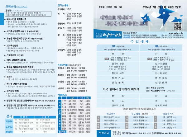 2014년 7월 6일 주보 페이지 정보 작성자 yabc 작성일14-07-05 00:00 조회10,013회 댓글0건 관련링크 목록 본문 2014년 7월 6일 주보 댓글목록 등록된 댓글이 없습니다. 목록