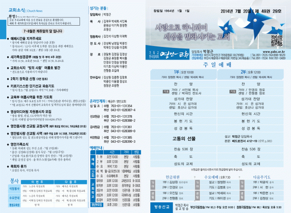 2014년 7월 20일 주보 페이지 정보 작성자 yabc 작성일14-07-19 00:00 조회11,362회 댓글0건 관련링크 목록 본문 2014년 7월 20일 주보 댓글목록 등록된 댓글이 없습니다. 목록