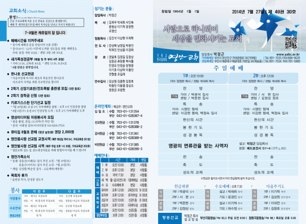 2014년 7월 27일 주보 페이지 정보 작성자 yabc 작성일14-07-26 00:00 조회12,508회 댓글0건 관련링크 목록 본문 2014년 7월 27일 주보 댓글목록 등록된 댓글이 없습니다. 목록