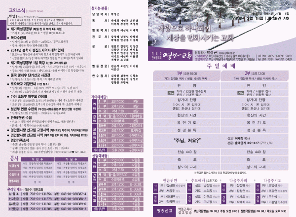 2014년 2월 16일 주보 페이지 정보 작성자 yabc 작성일14-02-15 00:00 조회10,357회 댓글0건 관련링크 목록 본문 2014년 2월 16일 주보 댓글목록 등록된 댓글이 없습니다. 목록