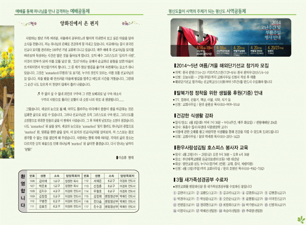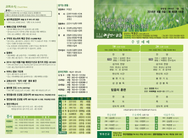 2014년 4월 6일 주보 페이지 정보 작성자 yabc 작성일14-04-05 00:00 조회10,139회 댓글0건 관련링크 목록 본문 2014년 4월 6일 주보 댓글목록 등록된 댓글이 없습니다. 목록