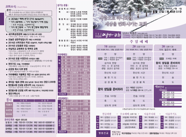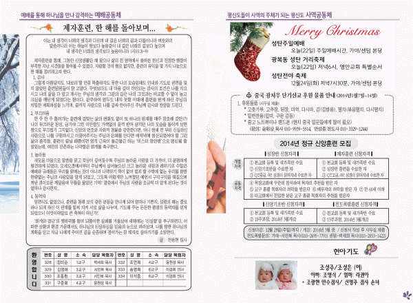 2013년 12월 22일 주보 페이지 정보 작성자 yabc 작성일13-12-21 00:00 조회12,575회 댓글0건 관련링크 목록 본문 2013년 12월 22일 주보 댓글목록 등록된 댓글이 없습니다. 목록