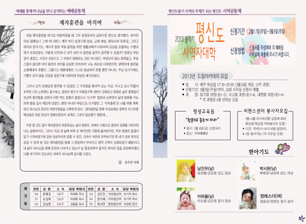 • 신앙기초반(12주)