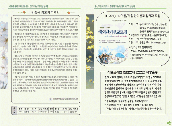 • 신앙기초반(12주)