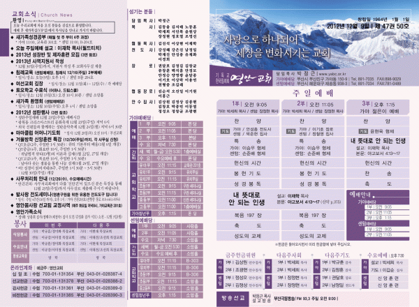 2012년 12월 9일 주보 페이지 정보 작성자 yabc 작성일12-12-08 00:00 조회11,000회 댓글0건 관련링크 목록 본문 2012년 12월 9일 주보 댓글목록 등록된 댓글이 없습니다. 목록