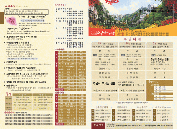 2012년 9월 30일 주보 페이지 정보 작성자 yabc 작성일12-09-28 00:00 조회10,356회 댓글0건 관련링크 목록 본문 2012년 9월 30일 주보 댓글목록 등록된 댓글이 없습니다. 목록