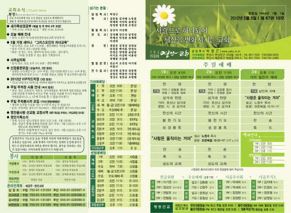 2012년 5월 6일 주보 페이지 정보 작성자 yabc 작성일12-05-04 00:00 조회10,508회 댓글0건 관련링크 목록 본문 2012년 5월 6일 주보 댓글목록 등록된 댓글이 없습니다. 목록