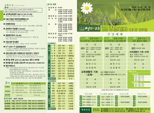 2012년 5월 27일 주보 페이지 정보 작성자 yabc 작성일12-05-26 00:00 조회10,540회 댓글0건 관련링크 목록 본문 2012년 5월 27일 주보 댓글목록 등록된 댓글이 없습니다. 목록