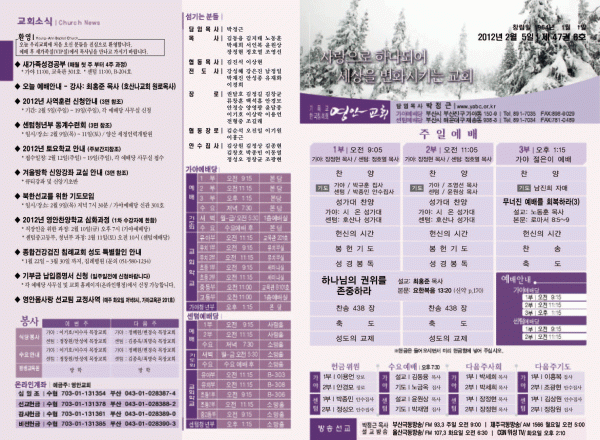 2012년 2월 5일 주보 페이지 정보 작성자 yabc 작성일12-02-04 00:00 조회10,463회 댓글0건 관련링크 목록 본문 2012년 2월 5일 주보 댓글목록 등록된 댓글이 없습니다. 목록