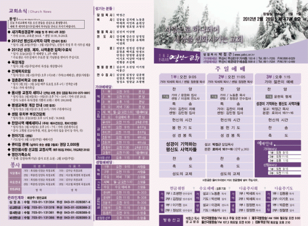 2012년 2월 26일 주보 페이지 정보 작성자 yabc 작성일12-02-25 00:00 조회10,761회 댓글0건 관련링크 목록 본문 2012년 2월 26일 주보 댓글목록 등록된 댓글이 없습니다. 목록
