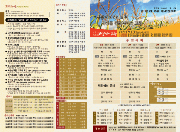 2011년 9월 25일 주보 페이지 정보 작성자 yabc 작성일11-09-24 00:00 조회11,086회 댓글0건 관련링크 목록 본문 2011년 9월 25일 주보 댓글목록 등록된 댓글이 없습니다. 목록