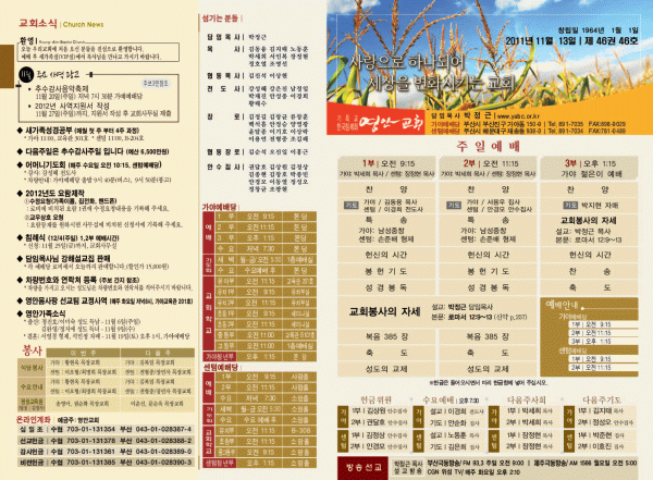 2011년 11월 13일 주보 페이지 정보 작성자 yabc 작성일11-11-12 00:00 조회10,360회 댓글0건 관련링크 목록 본문 2011년 11월 13일 주보 댓글목록 등록된 댓글이 없습니다. 목록