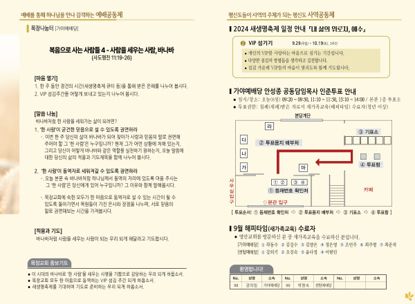 2024년 10월 6일 주보 (가야예배당) 페이지 정보 작성자 관리지기 작성일24-10-05 11:01 조회2,292회 댓글0건 관련링크 목록 본문 2024년 10월 6일 주보 (가야예배당) 댓글목록 등록된 댓글이 없습니다. 목록