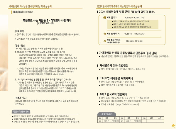 2024년 10월 13일 주보 (가야예배당) 페이지 정보 작성자 관리지기 작성일24-10-12 10:54 조회2,451회 댓글0건 관련링크 목록 본문 2024년 10월 13일 주보 (가야예배당) 댓글목록 등록된 댓글이 없습니다. 목록