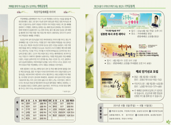2011년 6월 5일 주보 페이지 정보 작성자 yabc 작성일11-06-04 00:00 조회11,179회 댓글0건 관련링크 목록 본문 2011년 6월 5일 주보 댓글목록 등록된 댓글이 없습니다. 목록