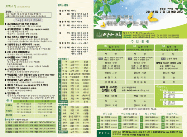 2011년 8월 21일 주보 페이지 정보 작성자 yabc 작성일11-08-20 00:00 조회10,965회 댓글0건 관련링크 목록 본문 2011년 8월 21일 주보 댓글목록 등록된 댓글이 없습니다. 목록