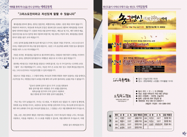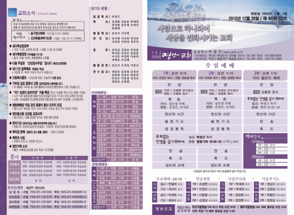 2010년 12월 26일 주보 페이지 정보 작성자 yabc 작성일10-12-24 00:00 조회11,079회 댓글0건 관련링크 목록 본문 2010년 12월 26일 주보 댓글목록 등록된 댓글이 없습니다. 목록