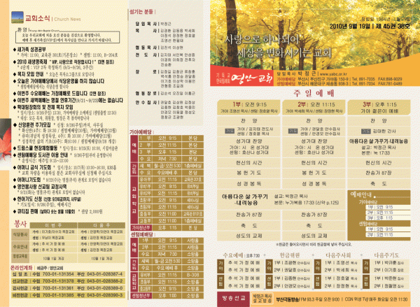 2010년 9월 19일 주보 페이지 정보 작성자 yabc 작성일10-09-18 00:00 조회11,024회 댓글0건 관련링크 목록 본문 2010년 9월 19일 주보 댓글목록 등록된 댓글이 없습니다. 목록
