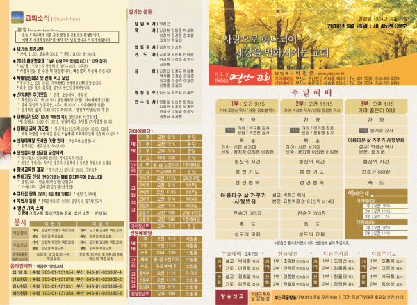 2010년 9월 26일 주보 페이지 정보 작성자 yabc 작성일10-09-25 00:00 조회11,025회 댓글0건 관련링크 목록 본문 2010년 9월 26일 주보 댓글목록 등록된 댓글이 없습니다. 목록