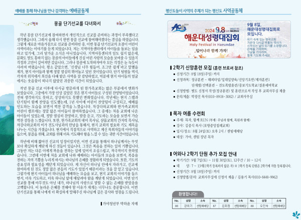 2024년 8월 11일 주보 (센텀예배당) 페이지 정보 작성자 관리지기 작성일24-08-10 10:52 조회2,293회 댓글0건 관련링크 목록 본문 2024년 8월 11일 주보 (센텀예배당) 댓글목록 등록된 댓글이 없습니다. 목록